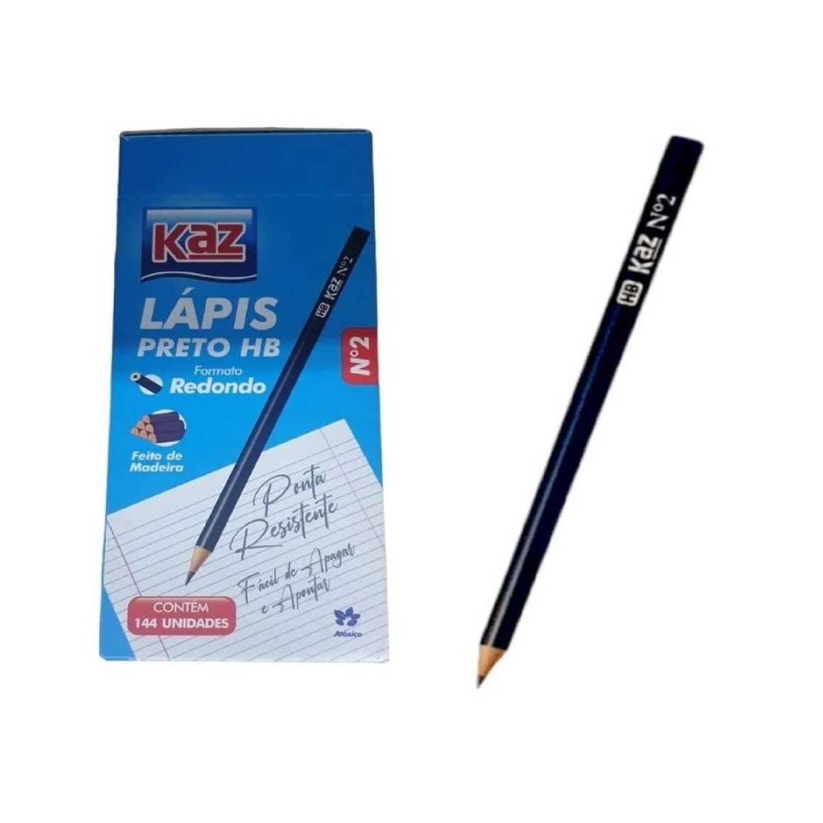 LAPIS PRETO HB MADEIRA REDONDO N°2 - KAZ CX C/144UN