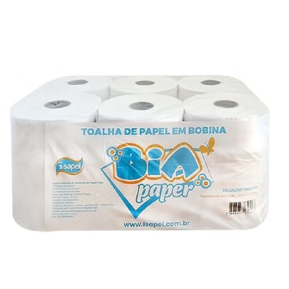 BIA - BOBINA PAPEL TOALHA CELULOSE PC.06UN.X200M - S/PICOTE - REF.030008